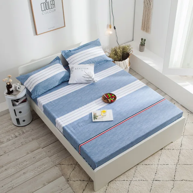 2019 New Cotton Waterproof Bed Mattress Cover with Elastic Band Printing Stripe Flower Bed Protection Pad