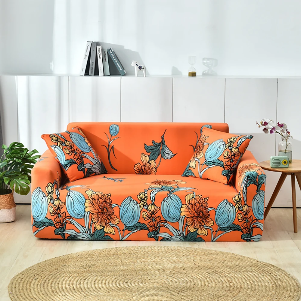 Cheap 4000229243710 Thumbedding Chrysanthem Sofa Cover Flexible Stretch Durable High End Comfortable Orange Sofa Bed Co