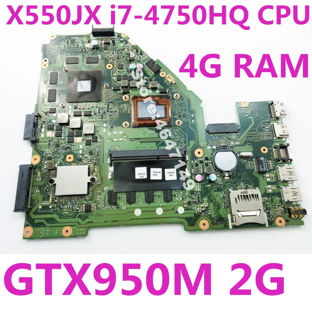 X550JX i7-4750HQ GTX950M 2GB 4G RAM Mainboard For ASUS X550J X550JK FX50J A550J K550J laptop mother 32980778045